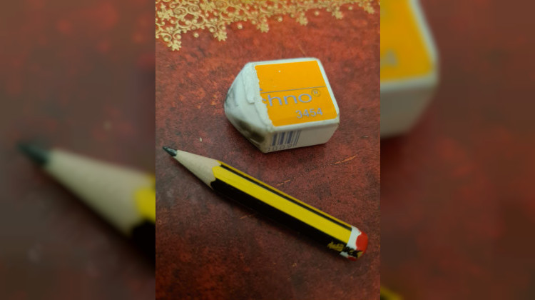 „Hey, wie geht es dir?“, fragte der Radiergummi leise.